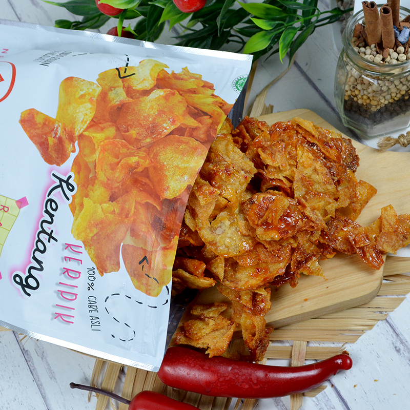 Keripik kentang renyah yang diolah dari kentang berkualitas pilihan. Memiliki tekstur yang super renyah berpadu dengan citarasa yang lezat, membuat Keripik Kentang Pedas Manis Leni Snack selalu diburu oleh pecinta kuliner. Dikemas dengan kemasan yang ekslusif sehingga sangat cocok dijadikan hantaran untuk orang-orang terdekat. Masa Ketahanan : 2 Bulan
